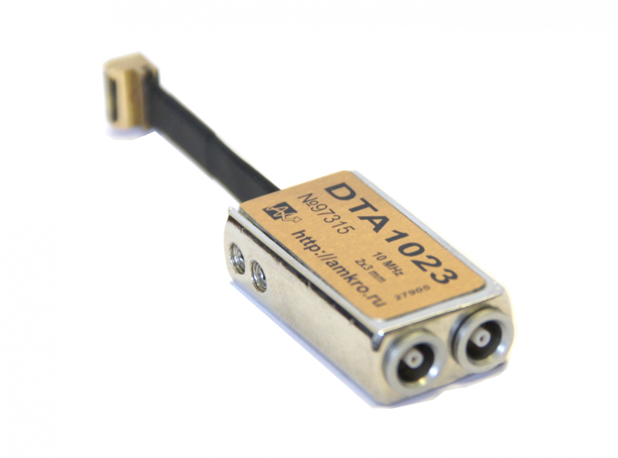Преобразователь для контроля толщины стенки турбинных лопаток в труднодоступных местах. Частота 10 МГц. Диапазон измерения от 0,4 мм.